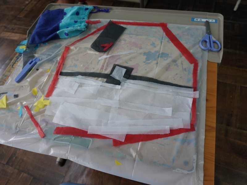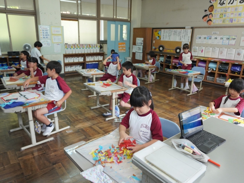「ざらざらでかたく」なる特徴を生かして、思い思いの作品を仕上げていました。