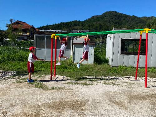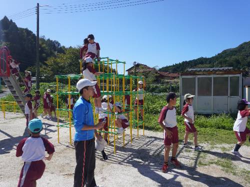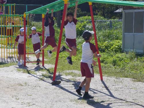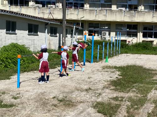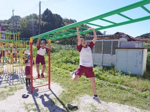 10日の朝、昇降口の前でハイタッチをしながらいつものように子どもたちを迎えていました。