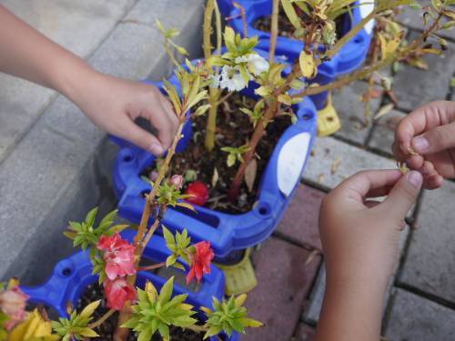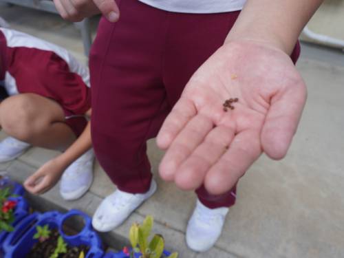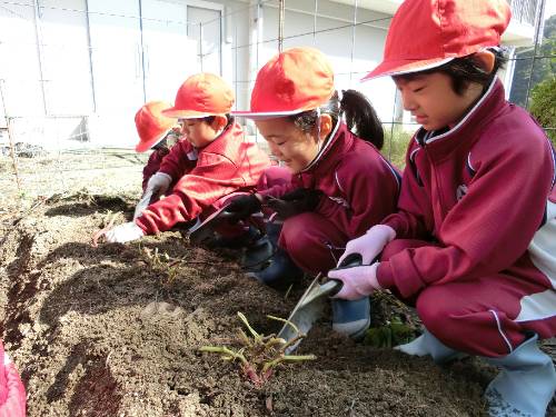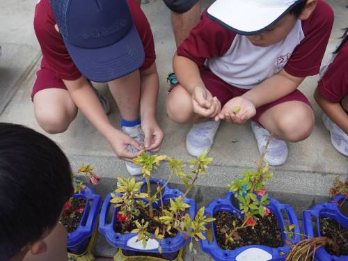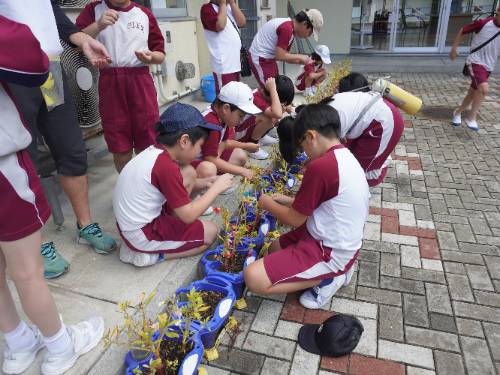 3・4年生は理科の時間に、一人一鉢で「ホウセンカ」の栽培を行いました。【植物は、種からどのように育つのだろうか】という学習をするためです。