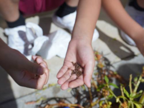 この日、自分の鉢で育てたホウセンカの種取りをしました。