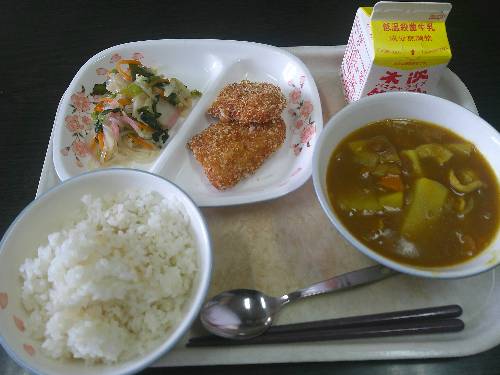 「今日の給食、カレーだよ~!」と朝から楽しみにしていた子どもたちでした(#^.^#)「ポークカレー」、期待どおりのおいしさでした(*^^)v