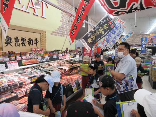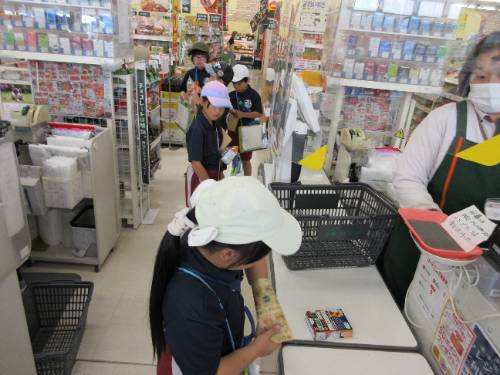 3・4年生が、社会科学習の一環で「Aコープ」に出かけました。見学の目的は『商品を売るための工夫や働く人たちの思いについて学ぶ』です。
