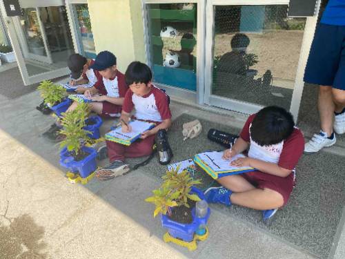 3・4年生は理科で「ほうせんか」の観察をしています。