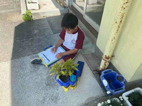 子どもたちは、「たねまき」~「子葉」のかんさつ~「葉」のかんさつ~・・・と根気よく観察を続けています。