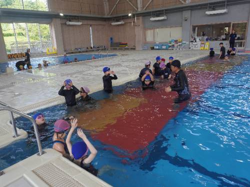 2年生以上は昨年からここで行っているので慣れたものですが、前回初めて経験した1年生もすっかり慣れて、楽しく水泳の授業に取り組んでいました!(^^)!
