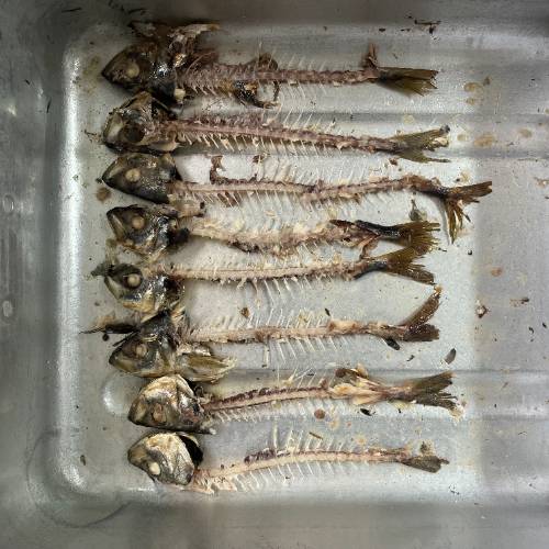 ↑6年生の食缶には、見事なアジの骨が・・・!(^^)!