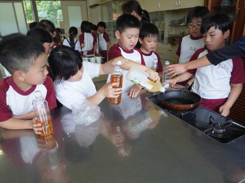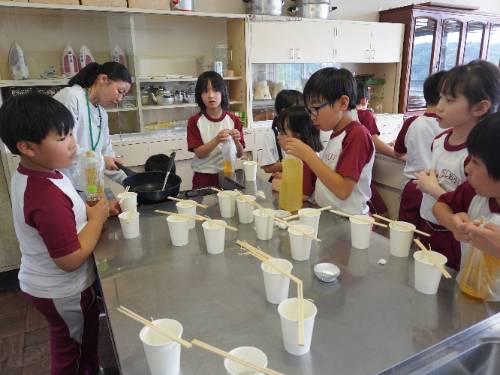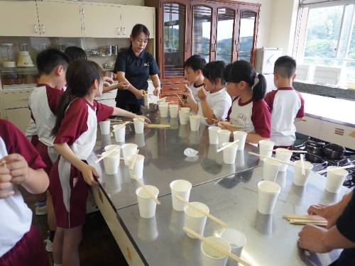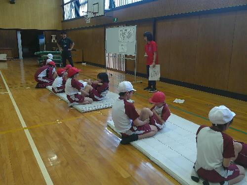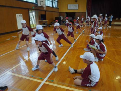 赤組・青組の縦割り班3班ずつ、計6つの班に分かれて、決められた計測順の種目から挑戦しました。それぞれの班のリーダーである6年生が下級生を上手にリードし、実施することができました(^^)/